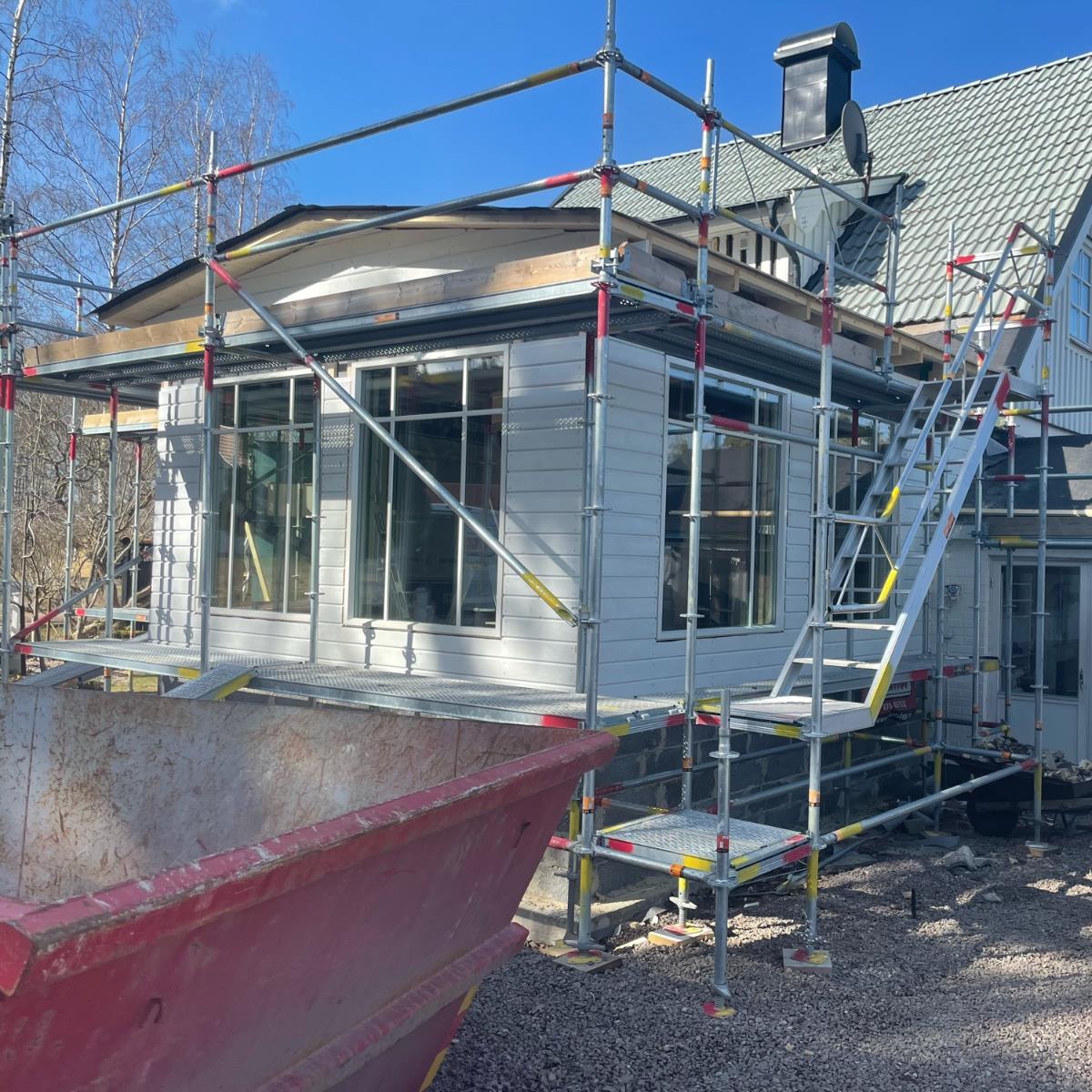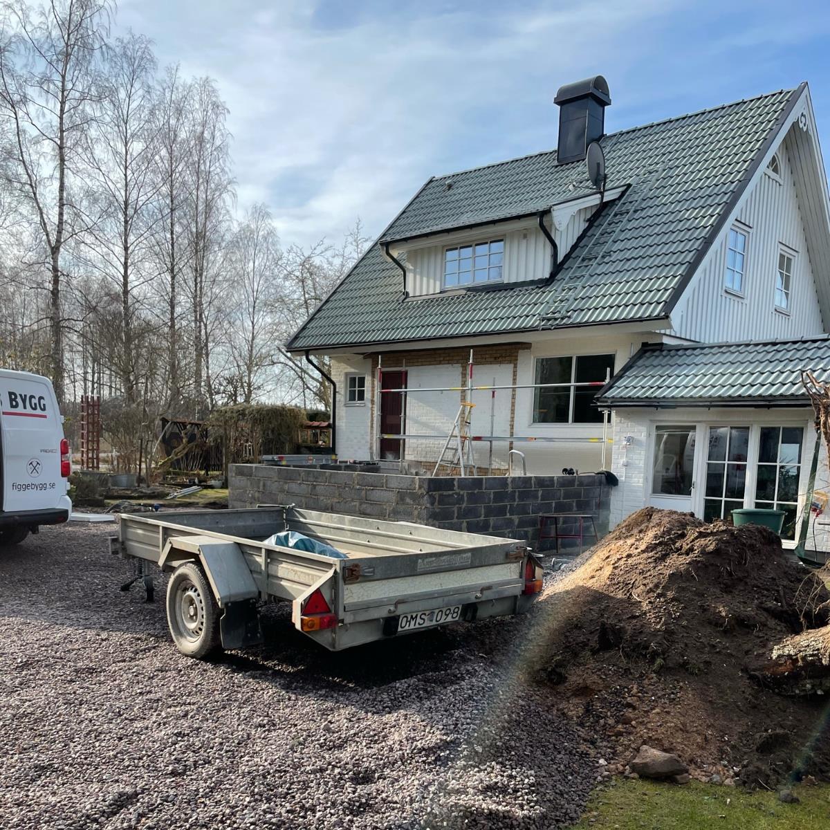 Uppmurad sockel med gjuten platta och golvvärme.
